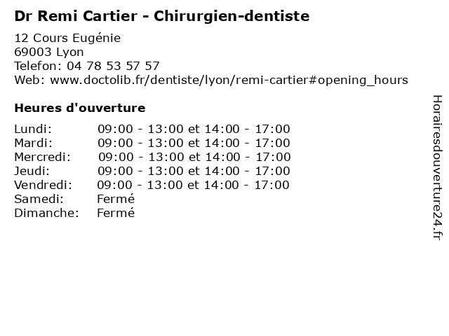 | Lundi | 09:00-13:00 et 14:00-17:00 |