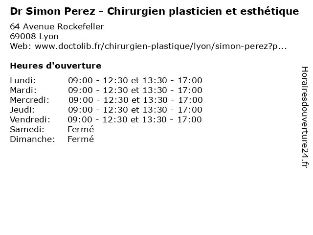 1 Dr Ana Velicanu - Chirurgien Plastique et esthétique (Distance: 0,09 km) 60 Avenue Rockefeller, 69008 Lyon 69008, ana, chirurgien, docteur, dr, esthétique, et, lyon, medicina, plastique, velicanu 2 Dr Phanette Gir - Chirurgien plasticien et esthétique (Distance: 1,20 km) 55 Avenue Jean Mermoz, 69008 Lyon chirurgien, docteur, dr, esthétique, et, gir, phanette, plasticien, sante, soins 3 Dr Simon Ducoulombier - Gynécologue médical et obstétrique (Distance: 1,54 km) 55 Avenue Jean Mermoz, 69008 Lyon consultation, docteur, dr, ducoulombier, et, gynécologue, med, médecin, médecine, médical, obstétrique, secrétariat, simon, traitement 4 Dr Erick Gaston - Chirurgien plasticien et esthétique (Distance: 1,81 km) 31 Rue Antoine Péricaud, 69008 Lyon chirurgie, chirurgien, dr, erick, esthétique, et, gaston, general, plasticien, soins 5 Dr Chrif Dlimi - Chirurgien plasticien et esthétique (Distance: 2,18 km) 171 Rue Léon Blum, 69100 Villeurbanne chirurgien, chrif, consultation, dlimi, docteur, dr, esthétique, et, med, médecin, médecine, plasticien, secrétariat, traitement 6 Dr Christophe Reinbold - Chirurgien plasticien et esthétique (Distance: 2,18 km) 171 Rue Léon Blum, 69100 Villeurbanne chirurgien, christophe, consultation, docteur, dr, esthétique, et, med, médecin, médecine, plasticien, reinbold, secrétariat, traitement |