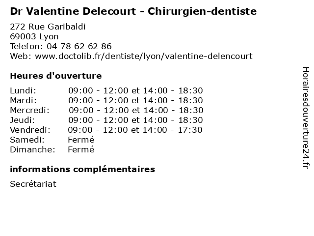 1 Valentine Barbe-Watine - Pédicure-podologue (Distance: 0,81 km) 1 Place du Commandant Claude Bulard, 69007 Lyon barbe, consultation, docteur, med, médecin, médecine, podologue, pédicure, secrétariat, traitement, valentine, watine 2 Valentine Lodato (Distance: 0,98 km) 12 Rue Dunoir, 69003 Lyon lodato, massages, relaxation, santé, thérapies, valentine 3 Valentine Bourgeois - Masseur-kinésithérapeute (Distance: 1,01 km) 84 rue Chevreul, 69007 Lyon bourgeois, kiné, kinésithérapeute, masseur, rééducation, soin, valentine 4 Maître Valentine Pariat - Avocate (Distance: 1,87 km) 18-20 Rue Tronchet, 69006 Lyon avocate, avocats, cabinet, conseils, contentieux, juridique, justice, litiges, maître, pariat, services, valentine 5 Les Gourmandises de Valentine (Distance: 2,16 km) 20 Rue Gabriel Peri, 69100 Villeurbanne boissons, de, gourmandises, les, pains, sandwich, spéciaux, thé, valentine 6 Valentine Bertignac - Psychologue (Distance: 2,19 km) 2 Place des Terreaux, 69001 Lyon bertignac, psy, psychiatre, psychologue, sante, soins, valentine |