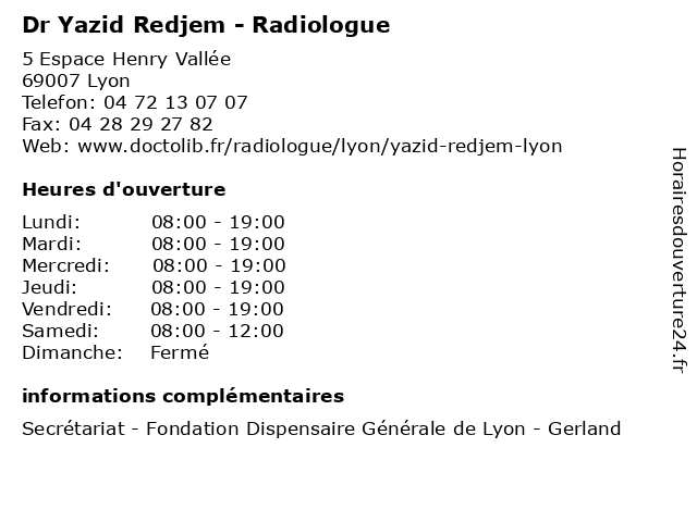 1 Dr Nadia Redjem - Anesthésiste (Distance: 4,01 km) 165 Chemin du Grand Revoyet, 69495 Pierre-Bénite anesthésiste, consultation, docteur, dr, med, médecin, médecine, nadia, redjem, traitement 2 Dr Yazid Cheraitia - Pédiatre (Distance: 4,67 km) 2 Avenue du 11 Novembre 1918, 69200 Vénissieux cheraitia, dr, enfant, pediatre, pédiatre, sante, soins, yazid 3 Dr Yazid Mouloua - Anesthésiste (Distance: 10,93 km) 65 Rue des Contamines, 69140 Rillieux-la-Pape anesthesiste, anesthésiste, consultation, docteur, dr, med, mouloua, médecin, médecine, traitement, yazid 4 Zairi Yazid (Distance: 48,14 km) 30 Rue Aristide Briand et de la Paix, 42000 Saint-Étienne yazid, zairi 5 Dr Laïla Amraoui - Radiologue (Distance: 0,00 km) 5 Espace Henry Vallée, 69007 Lyon amraoui, consultation, docteur, dr, laïla, med, médecin, radiologue, traitement 6 Dr Pierre Billon - Radiologue (Distance: 0,00 km) 5 Espace Henry Vallée, 69007 Lyon billon, consultation, docteur, dr, med, médecin, pierre, radiologue, traitement |