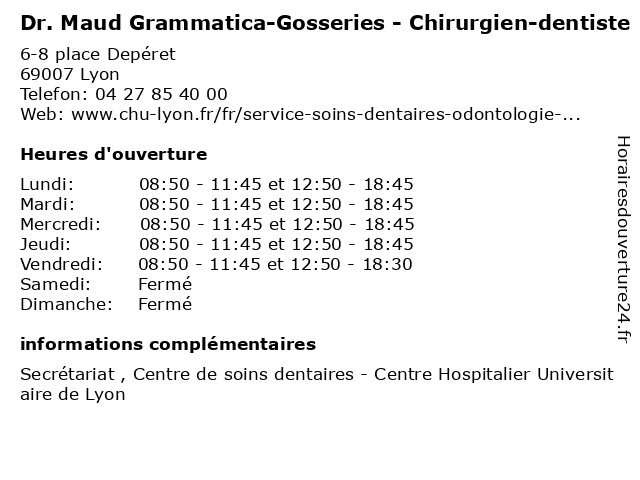 | Lundi | 08:50-11:45 et 12:50-18:45 |