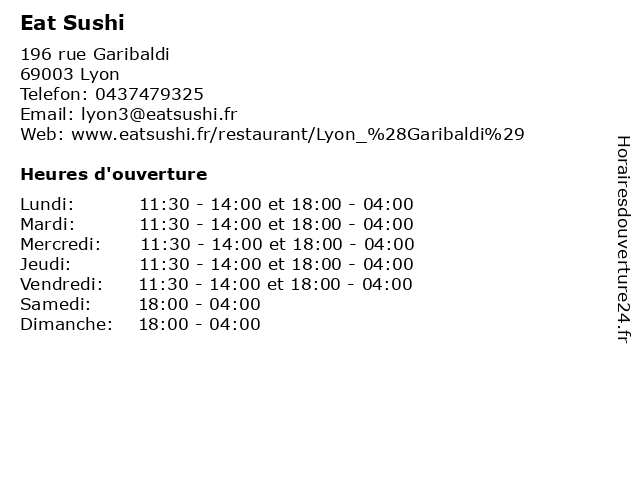 3 Sushi Daily (Distance: 0,19 km) . rue du Docteur Bouchut, 69003 Lyon daily, emporter, japonais, makis, restaurant, sushi, vente 6 Neo Sushi (Distance: 0,30 km) 17 rue du Docteur Bouchut, 69431 Lyon mode, neo, restaurant, shopping, sushi |