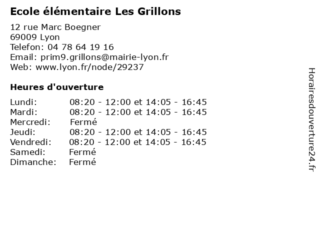 1 École élémentaire publique Frédéric Mistral (Distance: 0,21 km) 20 Rue Fayolle, 69009 Lyon cours, frédéric, mistral, publique, servicios, école, élémentaire 2 École élémentaire publique André Philip (Distance: 4,73 km) 48 Rue Dunoir, 69003 Lyon andré, cours, philip, publique, servicios, école, élémentaire 3 Ecole élémentaire Fulchiron (Distance: 4,79 km) 15 Quai Fulchiron, 69005 Lyon ecole, education, fulchiron, lyon, maternelle, primaire, publique, services, école, élémentaire 4 École élémentaire publique Croix Luizet (Distance: 5,16 km) 14 Louis Armand, 69100 Villeurbanne cours, croix, luizet, publique, servicios, école, élémentaire 5 École élémentaire publique Jean Zay (Distance: 5,21 km) 19 rue Raspail, 69100 Villeurbanne cours, jean, publique, servicios, zay, école, élémentaire 6 École élémentaire publique Jules Ferry (Distance: 6,57 km) 3 rue de la Baisse, 69100 Villeurbanne cours, ferry, jules, publique, servicios, école, élémentaire |