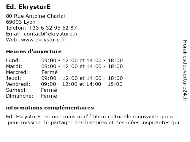 | Lundi | 09:00-12:00 et 14:00-18:00 |