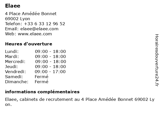 | Samedi | Fermé |