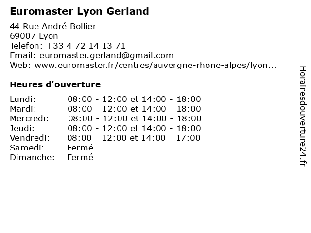 | Lundi | 08:00-12:00 et 14:00-18:00 |