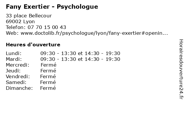 | Mardi | 09:30-13:30 et 14:30-19:30 |