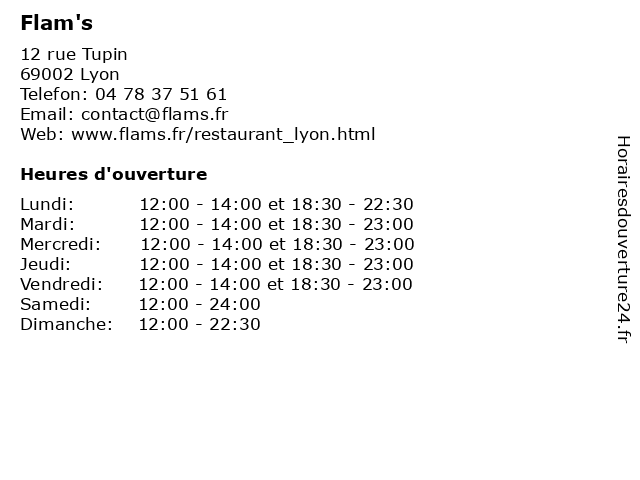 | Lundi | 12:00-14:00 et 18:30-22:30 |