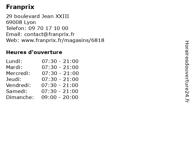 1 Franprix (Distance: 0,54 km) 21-23 avenue jean mermoz, 69008 Lyon bibi, carte de fidelite, courses, franprix, magasin, produits frais, programme de fidélité, supermarché, épicerie 2 Franprix (Distance: 0,95 km) 71-73 Cours Albert Thomas, 69003 Lyon bibi, carte de fidélité, courses, franprix, magasin, produits frais, programme de fidélité, supermarché, épicerie 3 Franprix (Distance: 0,96 km) 71-73 cours Albert Thomas, 69003 Lyon alimentaire, alimentation, courses, franprix, supermarché, supérette, épicerie 4 Franprix (Distance: 3,04 km) 74 Rue de Bonnel, 69003 Lyon alimentaire, alimentation, courses, franprix, supermarché, supérette, épicerie 5 Franprix (Distance: 3,16 km) 120 Rue Anatole France, 69100 Villeurbanne bibi, carte de fidélité, courses, franprix, magasin, produits frais, programme de fidélité, supermarché, épicerie 6 Franprix (Distance: 3,73 km) 49 Rue Cuvier, 69006 Lyon bibi, carte de fidélité, courses, franprix, magasin, produits frais, programme de fidélité, supermarché, épicerie |