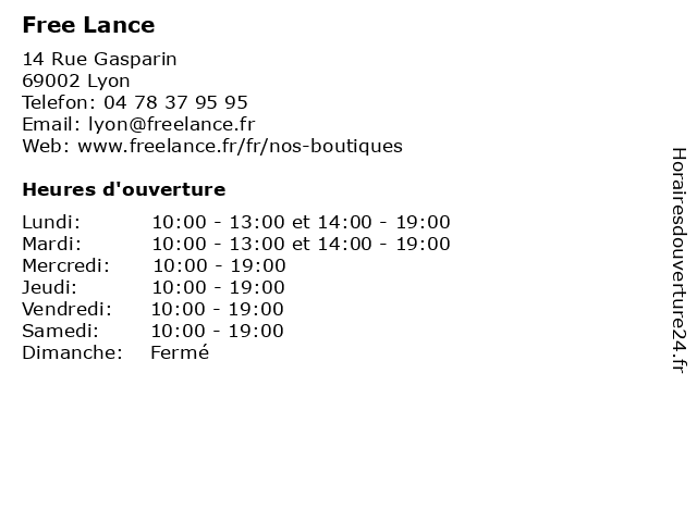 | Lundi | 10:00-13:00 et 14:00-19:00 |
