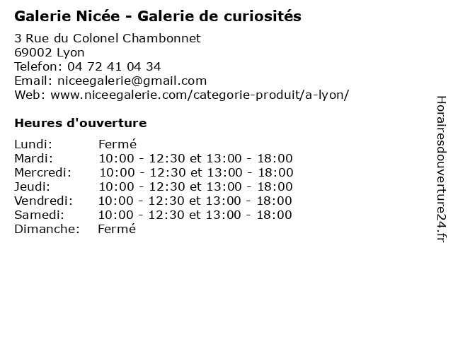 | Samedi | 10:00-12:30 et 13:00-18:00 |