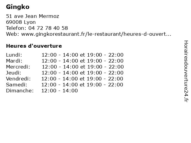 | Mardi | 12:00-14:00 et 19:00-22:00 |
