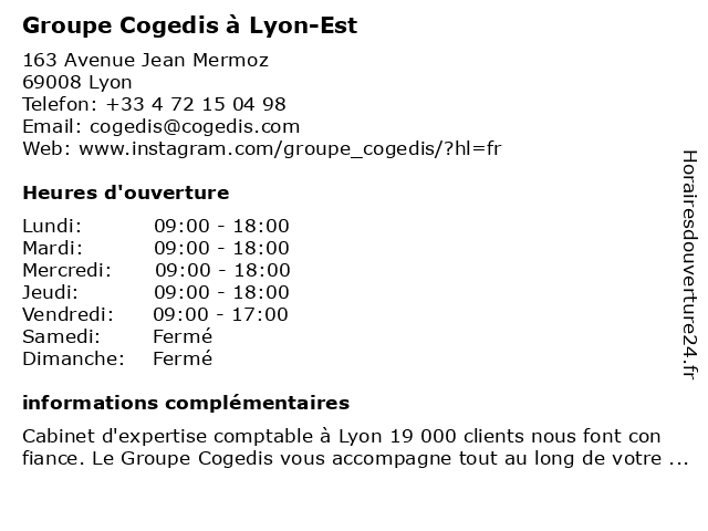 | Samedi | Fermé |