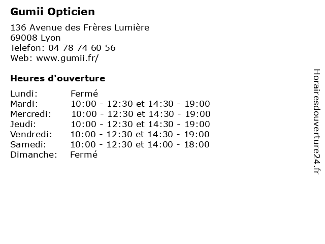 | Mercredi | 10:00-12:30 et 14:30-19:00 |