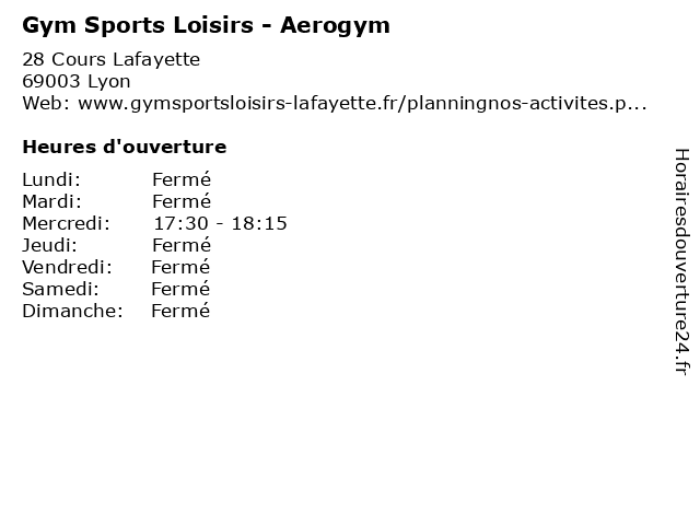 1 Gym Sports Loisirs - Gym (Distance: 0,00 km) 28 Cours Lafayette, 69003 Lyon centre, cours, gym, l'exercice, loisirs, muscles, salles, santé, sport, sports 2 Gym Sports Loisirs - Stretching (Distance: 0,00 km) 28 Cours Lafayette, 69003 Lyon centre, cours, gym, l'exercice, loisirs, muscles, salles, santé, sport, sports, stretching 3 Gym Sports Loisirs - Pilates (Distance: 0,00 km) 28 Cours Lafayette, 69003 Lyon centre, cours, gym, l'exercice, loisirs, muscles, pilates, salles, santé, sport, sports 4 Gym Sports Loisirs - Pilates intermédiaire (Distance: 0,00 km) 28 Cours Lafayette, 69003 Lyon centre, cours, gym, intermédiaire, l'exercice, loisirs, muscles, pilates, salles, santé, sport, sports 5 Gym Sports Loisirs - Cuisses abdos fessiers (Distance: 0,00 km) 28 Cours Lafayette, 69003 Lyon abdos, centre, cours, cuisses, fessiers, gym, l'exercice, loisirs, muscles, salles, santé, sport, sports 6 Gym Sports Loisirs - Gym douce (Distance: 0,00 km) 28 Cours Lafayette, 69003 Lyon centre, cours, douce, gym, l'exercice, loisirs, muscles, salles, santé, sport, sports |