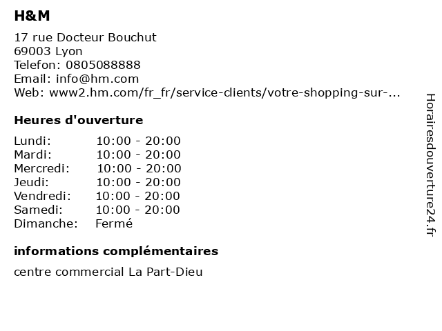 1 H&M (Distance: 1,52 km) 31 rue de la République, 69002 Lyon accessoires, h&m, hennes, mauritz, mode, mode pour enfants, mode pour femmes, mode pour hommes, sarl, vêtements pour enfants, vêtements pour femmes, vêtements pour hommes 2 H&M (Distance: 5,07 km) 2 Rue Jacquard, 69120 Vaulx en Velin cafe, chaussures, enfants, h&m, homme, lingerie, mode femme, restaurant, sport 3 Abercrombie & Fitch (Distance: 0,00 km) 17 rue Docteur Bouchut, 69003 Lyon abercrombie, accessoires, fitch, habillements, mode, vêtement 4 B.Attitude (Distance: 0,00 km) 17 rue Docteur Bouchut, 69003 Lyon accessoires, b.attitude, habillements, mode, vêtement 5 Citadium (Distance: 1,63 km) 7 rue de la Barre, 69002 Lyon chaussures, citadium, habillements, magasin, modes 6 Esprit (Distance: 1,66 km) 67 rue Edouard Hériot, 69002 Lyon accessoires, esprit, habillements, mode, vêtements |