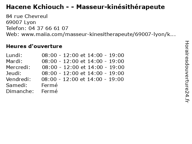 | Lundi | 08:00-12:00 et 14:00-19:00 |
