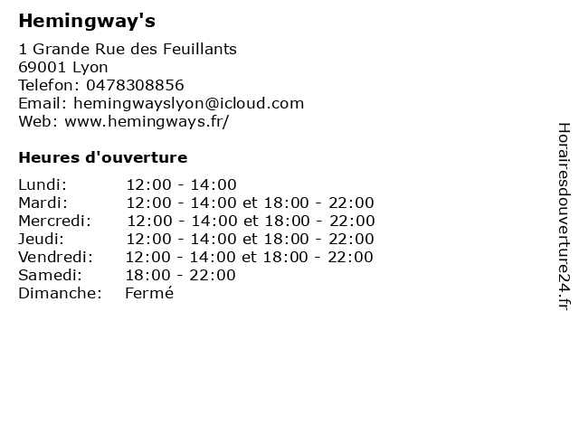 | Jeudi | 12:00-14:00 et 18:00-22:00 |