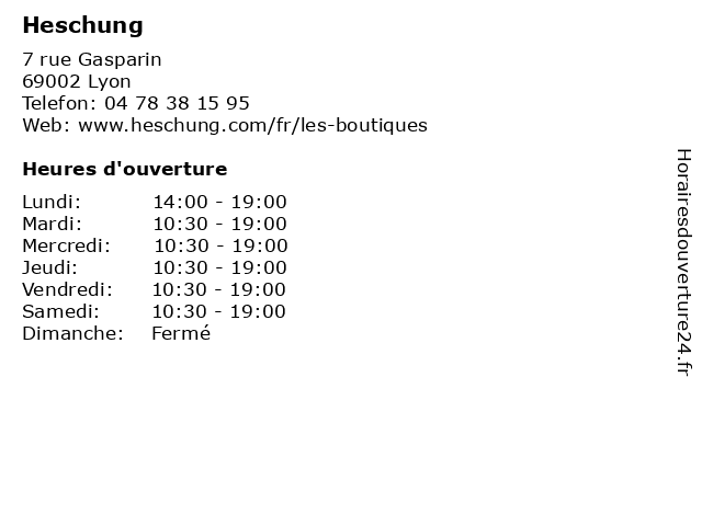 | Mercredi | 10:30-19:00 |