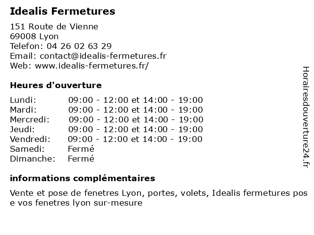 | Samedi | Fermé |