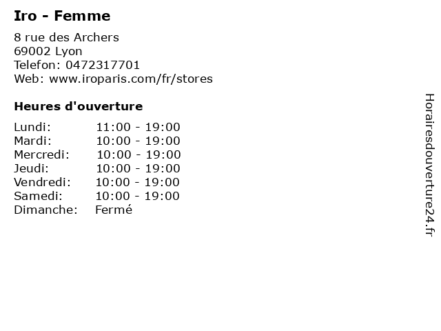 1 Claudie Pierlot (Distance: 0,00 km) 8 Rue des Archers, 69002 Lyon accessoires, claudie, mode, pierlot, prêt-à-porter, vêtements 3 American Vintage (Distance: 0,02 km) 11 Rue Emile Zola, 69002 Lyon american, femme, homme, mode, outlet, vintage 5 Liu Jo (Distance: 0,06 km) 9 Rue des Archers, 69002 Lyon accesoires, boutique, jo, liu, mode, vetements 6 |