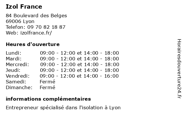 | Samedi | Fermé |
