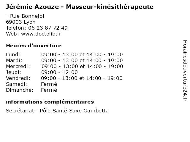 | Lundi | 09:00-13:00 et 14:00-19:00 |