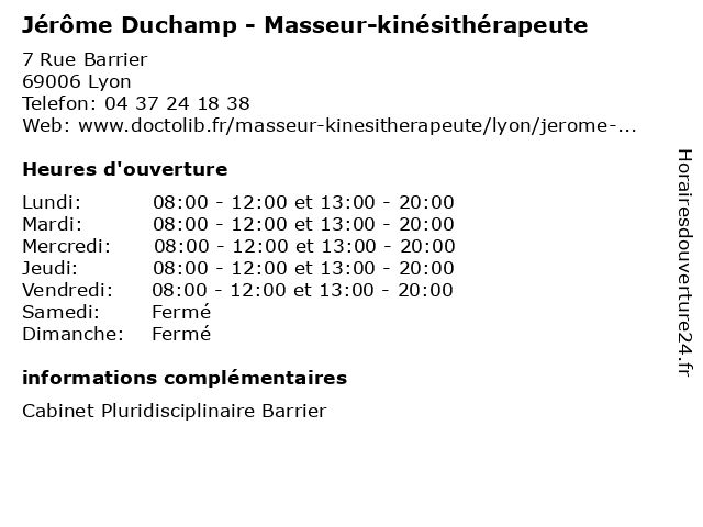 | Lundi | 08:00-12:00 et 13:00-20:00 |