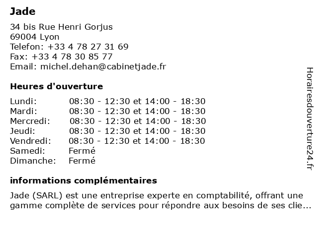 | Lundi | 08:30-12:30 et 14:00-18:30 |
