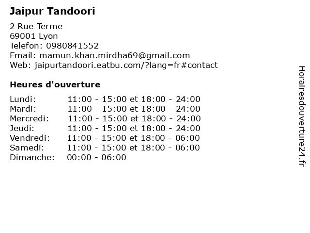 | Mardi | 11:00-15:00 et 18:00-24:00 |