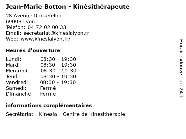 | Lundi | 08:30-19:30 |