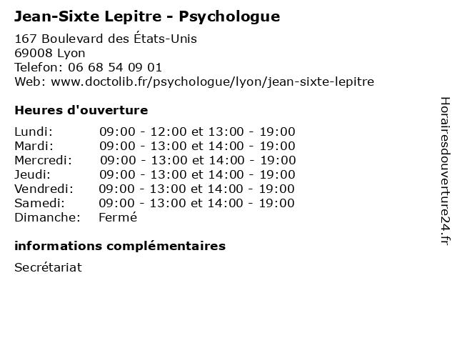 | Mardi | 09:00-13:00 et 14:00-19:00 |