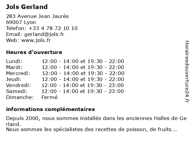 | Vendredi | 12:00-14:00 et 19:30-23:00 |