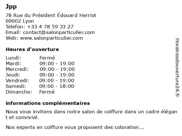 | Lundi | Fermé |