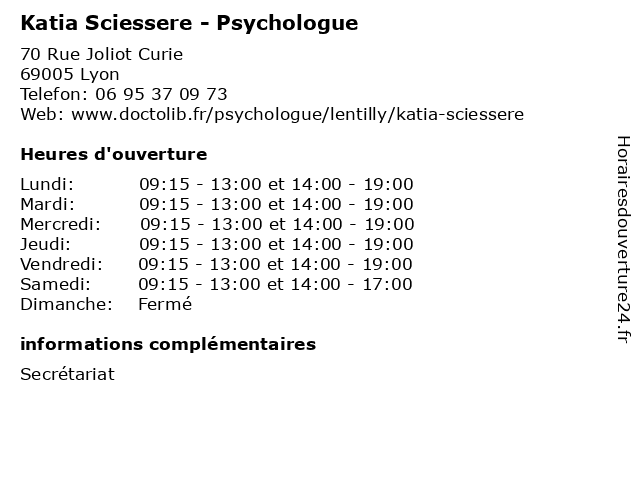 | Mardi | 09:15-13:00 et 14:00-19:00 |