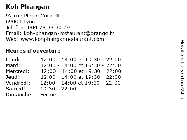 | Lundi | 12:00-14:00 et 19:30-22:00 |