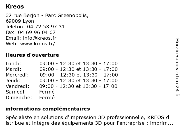 | Lundi | 09:00-12:30 et 13:30-17:00 |