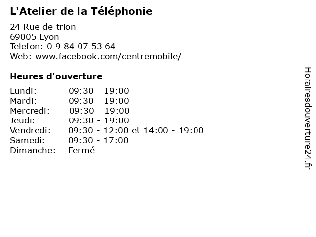 | Vendredi | 09:30-12:00 et 14:00-19:00 |