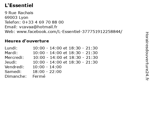 | Mardi | 10:00-14:00 et 18:30-21:30 |