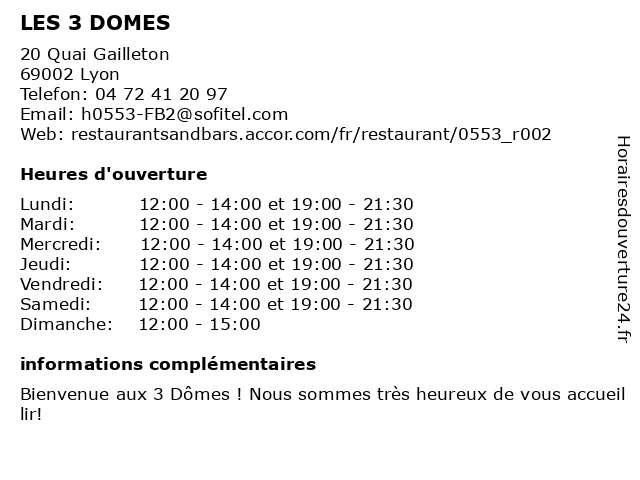 | Mercredi | 12:00-14:00 et 19:00-21:30 |
