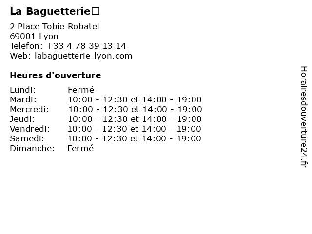 | Samedi | 10:00-12:30 et 14:00-19:00 |