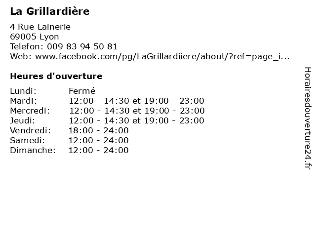 | Mardi | 12:00-14:30 et 19:00-23:00 |