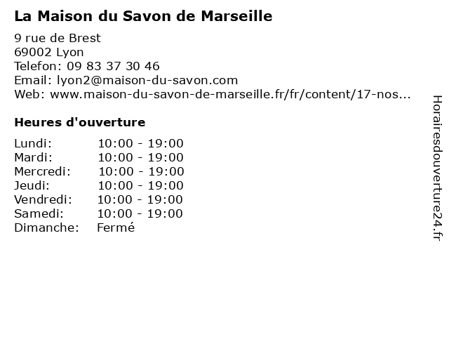 | Samedi | 10:00-19:00 |