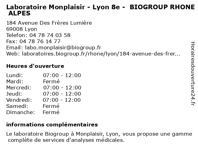 Termes de recherche pour Laboratoire Monplaisir - Lyon 8e - BIOGROUP RHONE ALPES:lyon, laboratoire, alpes, rhone, monplaisir, 8e, biogroup, dépistages, laboratoire de diagnostic |