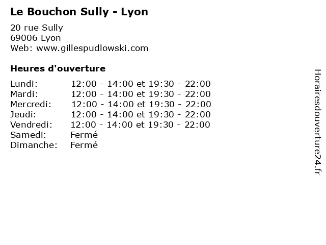 | Vendredi | 12:00-14:00 et 19:30-22:00 |