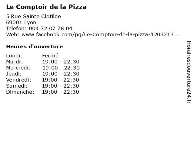 | Lundi | Fermé |