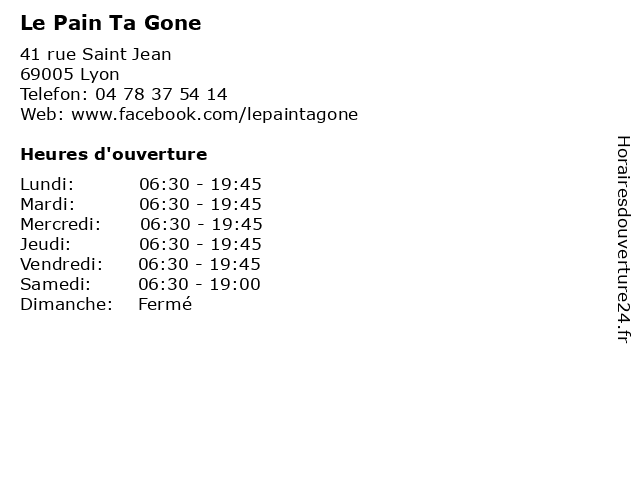 1 Le Pain des Jacobins (Distance: 0,40 km) 3 Rue de l'Ancienne Préfecture, 69002 Lyon biscuits, boulangerie, chocolats, des, gâteaux, jacobins, le, pain, pâtisserie 2 Pain de Sucre (Distance: 0,47 km) 46 Rue de Brest, 69002 Lyon de, femmes, les bas, lingerie, maillots de bain, mode, pain, sucre, vêtements 3 Restaurant Le Gone (Distance: 0,48 km) 57 Rue Mercière, 69002 Lyon bar, bistrot, brasserie, café, gone, le, restaurant, restauration 5 Au Pain des Traboules (Distance: 0,71 km) 9 Rue Lanterne, 69001 Lyon au, boulangerie, des, desserts, nourriture, pain, traboules 6 Paume de Pain (Distance: 1,53 km) 13 rue Perrod, 69004 Lyon bio, boulangerie, de, desserts, nourriture, pain, paume |