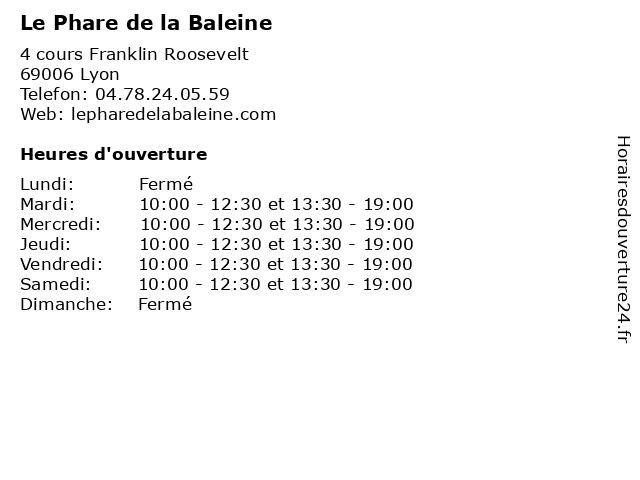| Samedi | 10:00-12:30 et 13:30-19:00 |