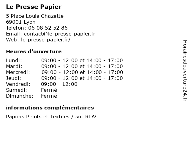 | Mardi | 09:00-12:00 et 14:00-17:00 |