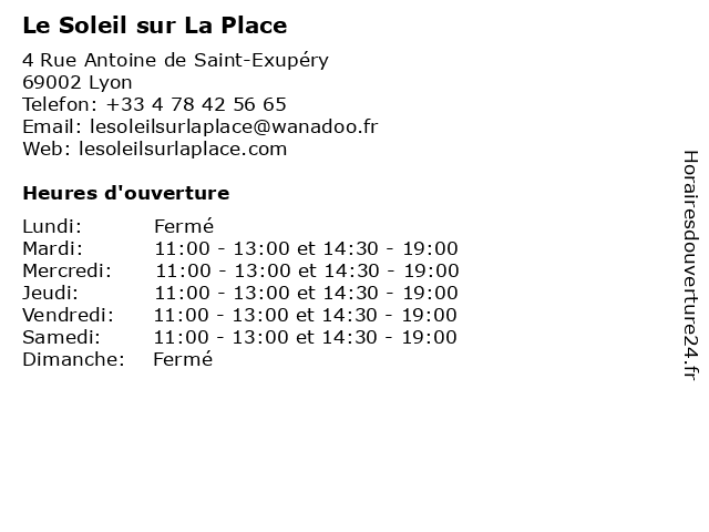 Samedi | 11:00-13:00 et 14:30-19:00 |